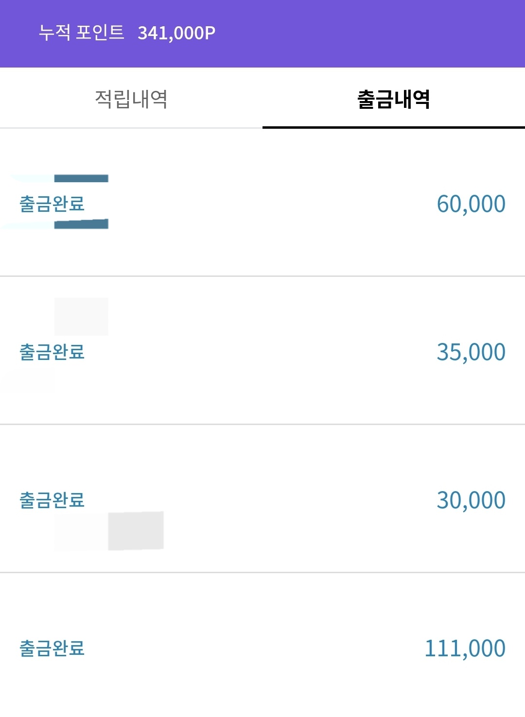 제가 자주 이용하는 체험단 사이트 포인트 내역인데요